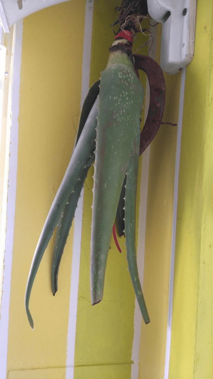 Aloe vera hung at house entrance against bad energy.