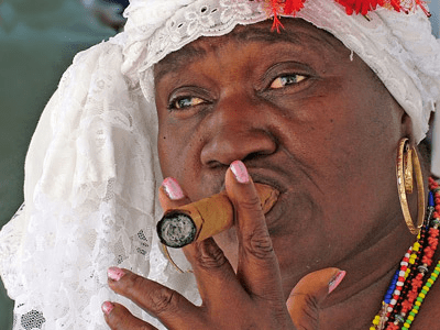 Cigar smoker, a ritual/ spiritual action to get rid of bad energy and cure people.