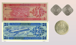 Por ehèmpel e plaka [moneda di dos sèn i mei], e locha virkant, e moneda di dos sikuenta [2,50], e sèn di papel di dos sinkuenta, sinku florin i dosshentisin- kuenta florin. E nòmbernan di plaka tambe a pasa den desaroyo. Por ehèmpel sinku sèn ta konosí bou di tur e nòmbernan akí. Locha, zepelín, skapadepchi i dòsplaka.